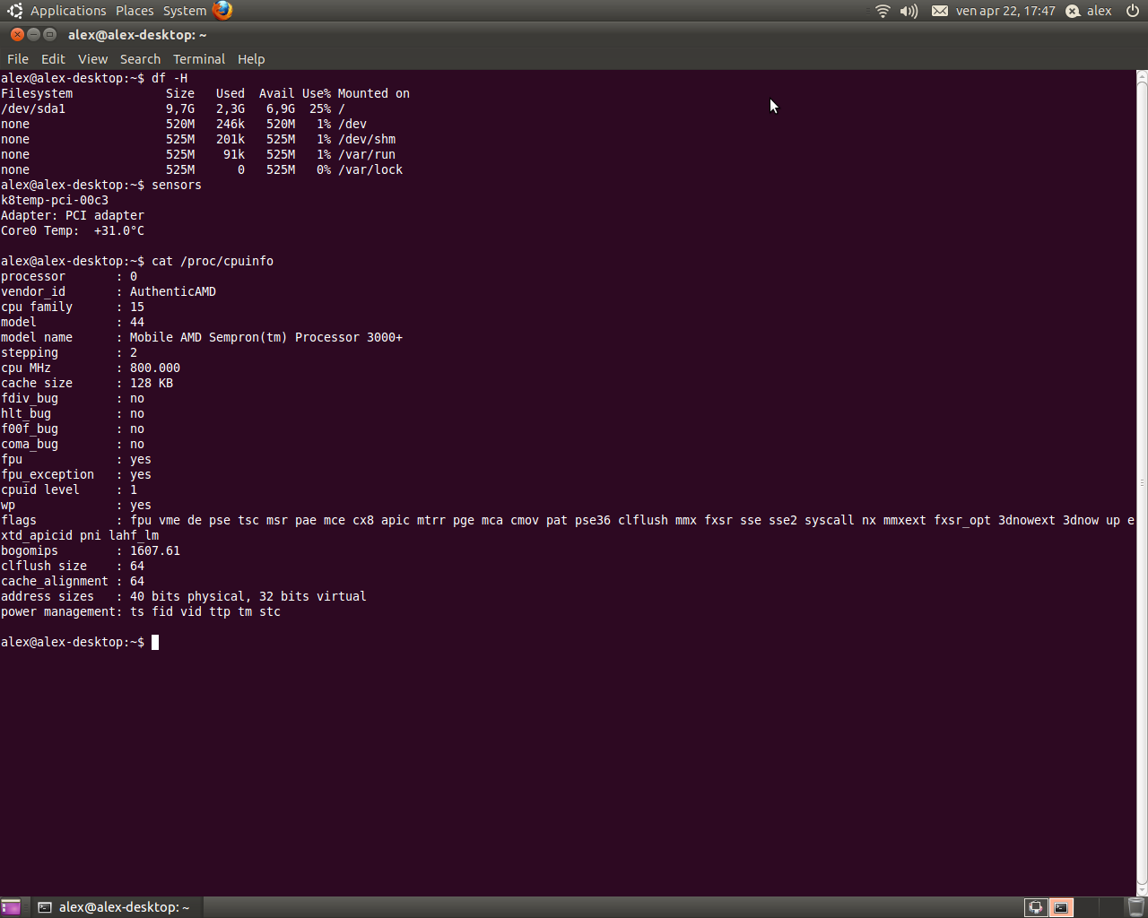 Ecco una schermata della Ubuntu 10.10 appena installata nel nuovo PC fisso, in cui si è reincarnato il mio vecchio portatile (qui la sua elegia): ho infatti recuperato il Sempron (che peraltro ha ormai compiuto 6 anni) e l’ho inserito in una scheda madre adeguata, recuperato un po’ di componenti vari et voilà!